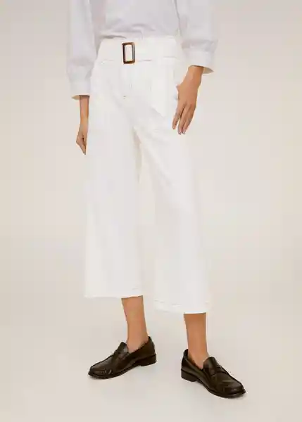Cierre de Cremallera y Botón Cinturón Desmontable Corte Recto Costuras en Contraste Dos Bolsillos Laterales Hebilla Efecto Carey Tejido Con Algodón Tiro Alto - 67022519_01