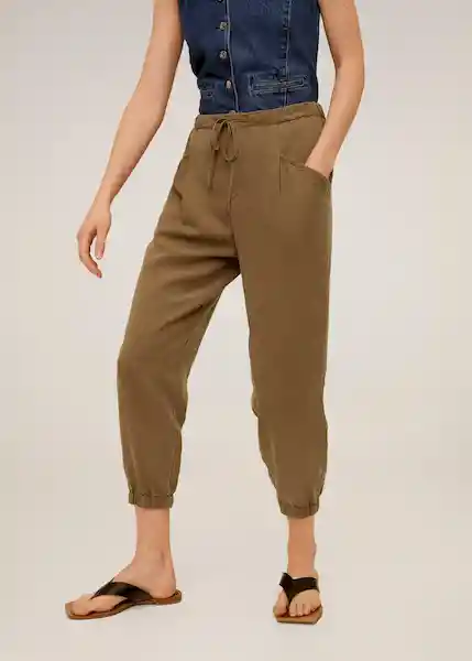 Cinta en la Cintura Con Cierre de Lazo Corte Recto Diseño Jogger Dos Bolsillos Goma Elástica en la Parte Posterior Tejido Fluido - 67056308_37