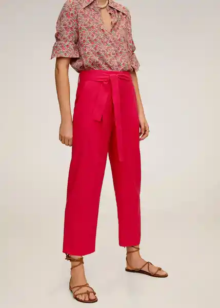 Bolsillos Laterales Cierre de Cremallera y Gancho Cinturón Ajustable Detalle de Pinzas Diseño Crop Diseño Recto Dos Bolsillos de Ribete en la Parte Posterior Tejido Con Lino Tiro Alto - 67029213_88