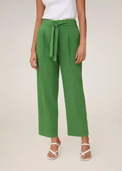 Bolsillos Laterales Cierre de Cremallera y Gancho Cinturón Ajustable Detalle de Pinzas Diseño Crop Diseño Recto Dos Bolsillos de Ribete en la Parte Posterior Tejido Con Lino Tiro Alto - 67029213_43