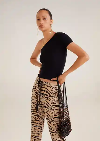 Cierre de Lazo Cintura Elástica Corte Recto Dos Bolsillos Laterales Estampado Tejido Fluido Tiro Medio - 63180520_09