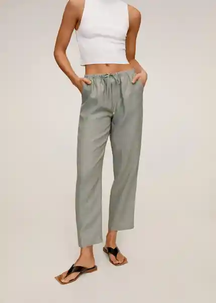 Cierre de Lazos Ajustables Cintura Elástica Corte Recto Dos Bolsillos de Ribete en la Parte Posterior Dos Bolsillos Laterales Tejido de Lino 67067878_43