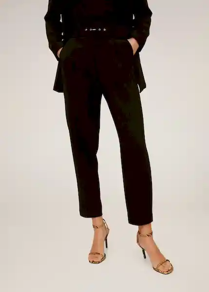 Bolsillo de Ribete en la Parte Posterior Bolsillos Laterales Cierre de Cremallera y Gancho Cinturón Ajustable Detalle de Pinzas Diseño Recto Tiro Alto - 67054411_99