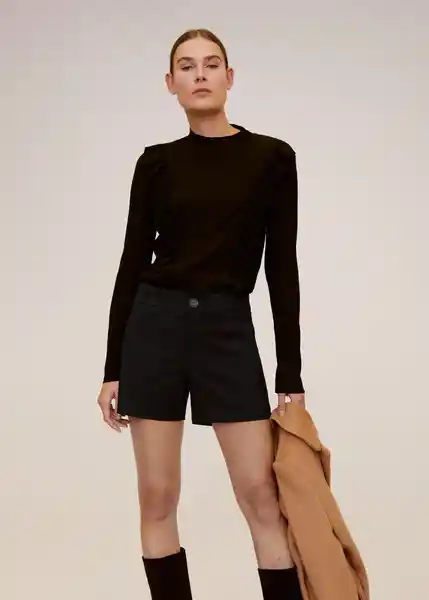 Cierre de Cremallera y Botón Diseño Corto Dos Bolsillos de Ribete en la Parte Delantera Dos Bolsillos de Ribete en la Parte Posterior Tejido Con Algodón Trabillas - 67000009_99