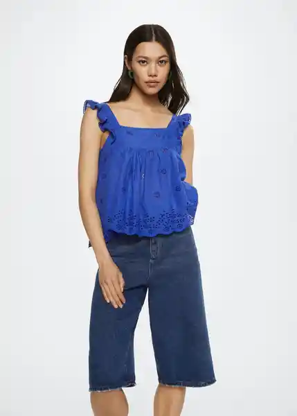 100% Algodón Bordado Floral Colección Committed Cuello Redondo Detalle de Volantes Diseño Recto Sin Mangas Tejido Ligero Volantes en Las Mangas 27018636_55.