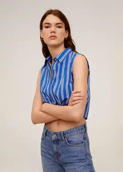 Cierre de Botones en la Parte Delantera Cuello Clásico Diseño Acampanado Estampado de Rayas Sin Mangas Tejido de Algodón - 67072523_56