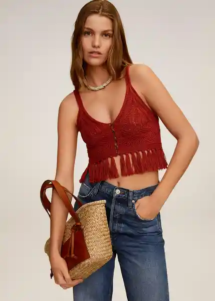 Cierre de Botones en la Parte Delantera Cuello Pico Diseño Corto Sin Mangas Tejido de Crochet Terminación de Flecos Tirantes - 67059202_28