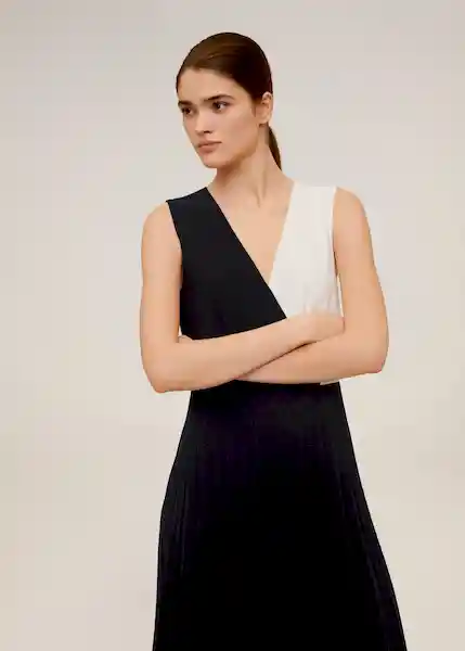 Bajo Acampanado Bicolor Cierre de Cordón Diseño Acampanado Diseño Midi Escote de Pico Cruzado Falda Plisada Sin Mangas Tirantes Anchos - 67054412_99
