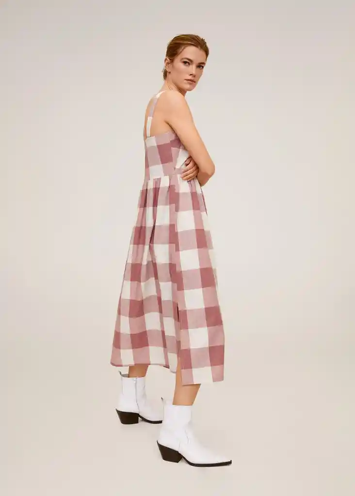 Cierre de Cremallera en la Parte Posterior Cintura Elástica Diseño Acampanado Estampado de Cuadros Sin Mangas Tejido de Algodón - 67012523_81