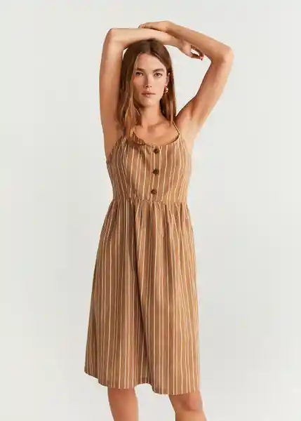 Cierre de Dos Botones en la Parte Delantera Diseño Acampanado Escote de Pico Fruncido Elástico en la Cintura Sin Mangas Tejido Con Algodón - 67040026_31