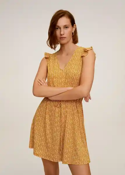 Bajo Acampanado Cinturón Ajustable Diseño Corto Diseño Estampado Escote de Pico Manga Corta Con Volante Tejido Fluido - 67077887_15