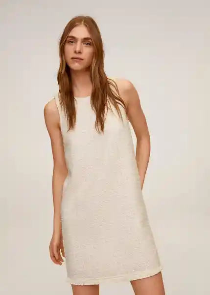 Cierre de Lágrima en la Parte Posterior Corte Recto Cuello Redondo Diseño Corto Forro Interior Sin Mangas Tejido Mezcla de Algodón Tejido Tweed Terminaciones Deshilachadas - 67026723_05