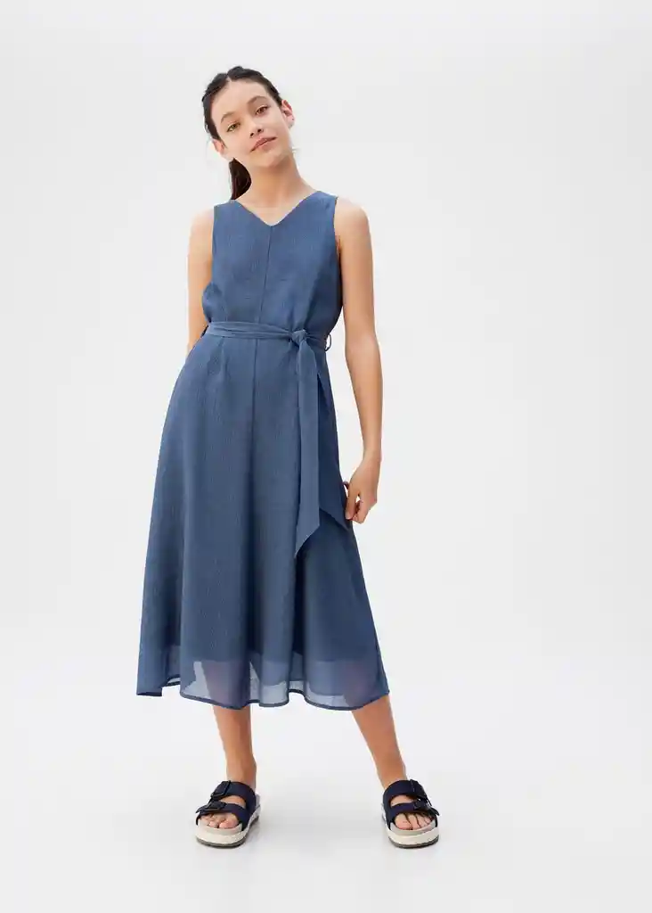 Cuello Pico Diseño Acampanado Diseño Midi Forro Interior Lazo Desmontable a la Cintura Tejido Fluido Tirantes - 67045723_54