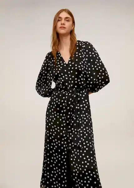 Cierre de Botones en la Parte Delantera Cierre de Lazo Cintura Entallada Diseño Midi Escote de Pico Estilo Camisero Manga Corta Abullonada Tejido Fluido - 67086708_99