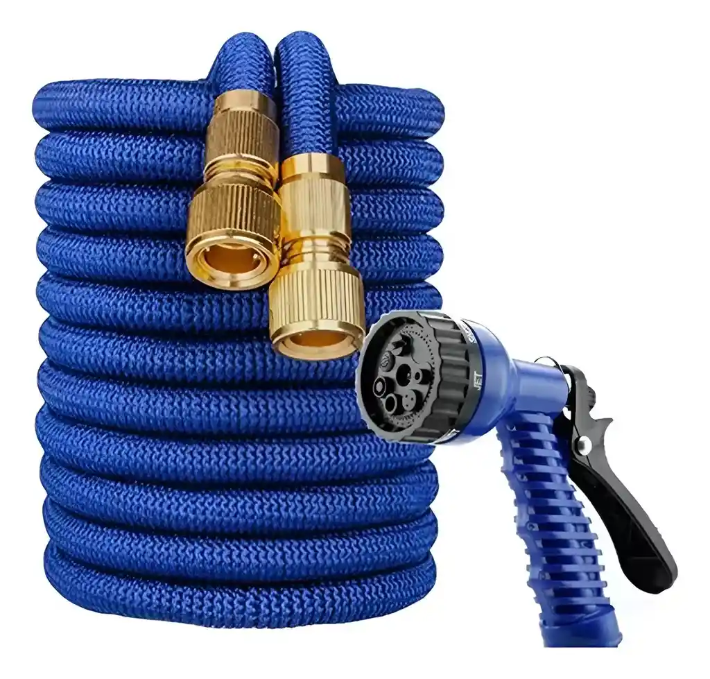 🌿 Manguera Expandible 15 Metros ( 50 FT) con Pistola Multifunción Práctica y resistente manguera expandible ideal para el riego del jardín, lavado de autos, patios, terrazas y más. Su diseño flexible permite que se expanda automáticamente con la presión del agua y se contraiga al vaciarse, facilitando su almacenamiento sin ocupar espacio. ✅ Características: Largo máximo: 15 metros ( 50 FT) Material: Doble capa de látex con recubrimiento textil de alta resistencia Sistema expandible: Se extiende hasta 3 veces su tamaño original Conectores metálicos: Adaptadores de bronce resistentes a fugas y corrosión Pistola rociadora incluida: Con múltiples tipos de chorro (suave, fuerte, ducha, niebla, etc.) Ligera y flexible: Fácil de manejar, no se enreda ni se retuerce Alta durabilidad: Soporta presión de agua constante Instalación rápida: Compatible con grifos estándar 🔹 Ideal para: Jardines y plantas Lavado de carros y motos Limpieza de patios, ventanas y fachadas ✨ Ahorra espacio, tiempo y esfuerzo con esta manguera expandible moderna y funcional.