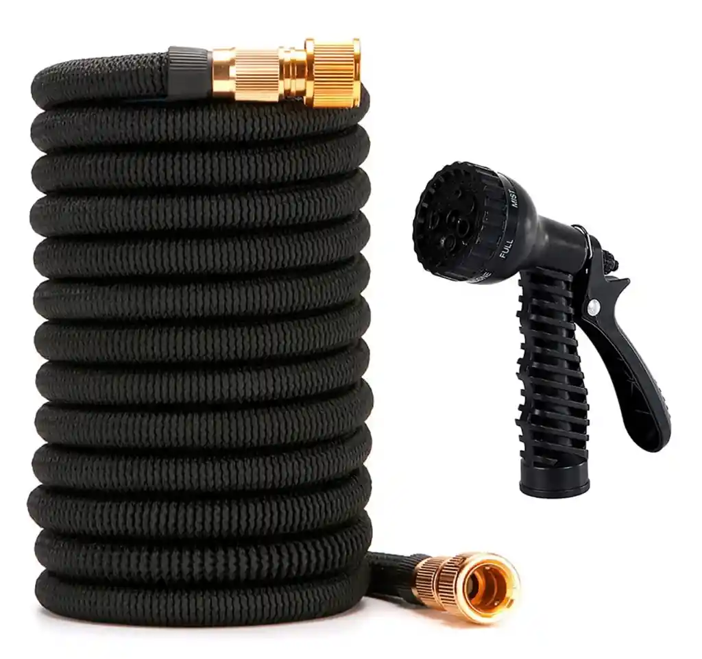 🌿 Manguera Expandible 15 Metros ( 50 FT) con Pistola Multifunción Práctica y resistente manguera expandible ideal para el riego del jardín, lavado de autos, patios, terrazas y más. Su diseño flexible permite que se expanda automáticamente con la presión del agua y se contraiga al vaciarse, facilitando su almacenamiento sin ocupar espacio. ✅ Características: Largo máximo: 15 metros ( 50 FT) Material: Doble capa de látex con recubrimiento textil de alta resistencia Sistema expandible: Se extiende hasta 3 veces su tamaño original Conectores metálicos: Adaptadores de bronce resistentes a fugas y corrosión Pistola rociadora incluida: Con múltiples tipos de chorro (suave, fuerte, ducha, niebla, etc.) Ligera y flexible: Fácil de manejar, no se enreda ni se retuerce Alta durabilidad: Soporta presión de agua constante Instalación rápida: Compatible con grifos estándar 🔹 Ideal para: Jardines y plantas Lavado de carros y motos Limpieza de patios, ventanas y fachadas ✨ Ahorra espacio, tiempo y esfuerzo con esta manguera expandible moderna y funcional.