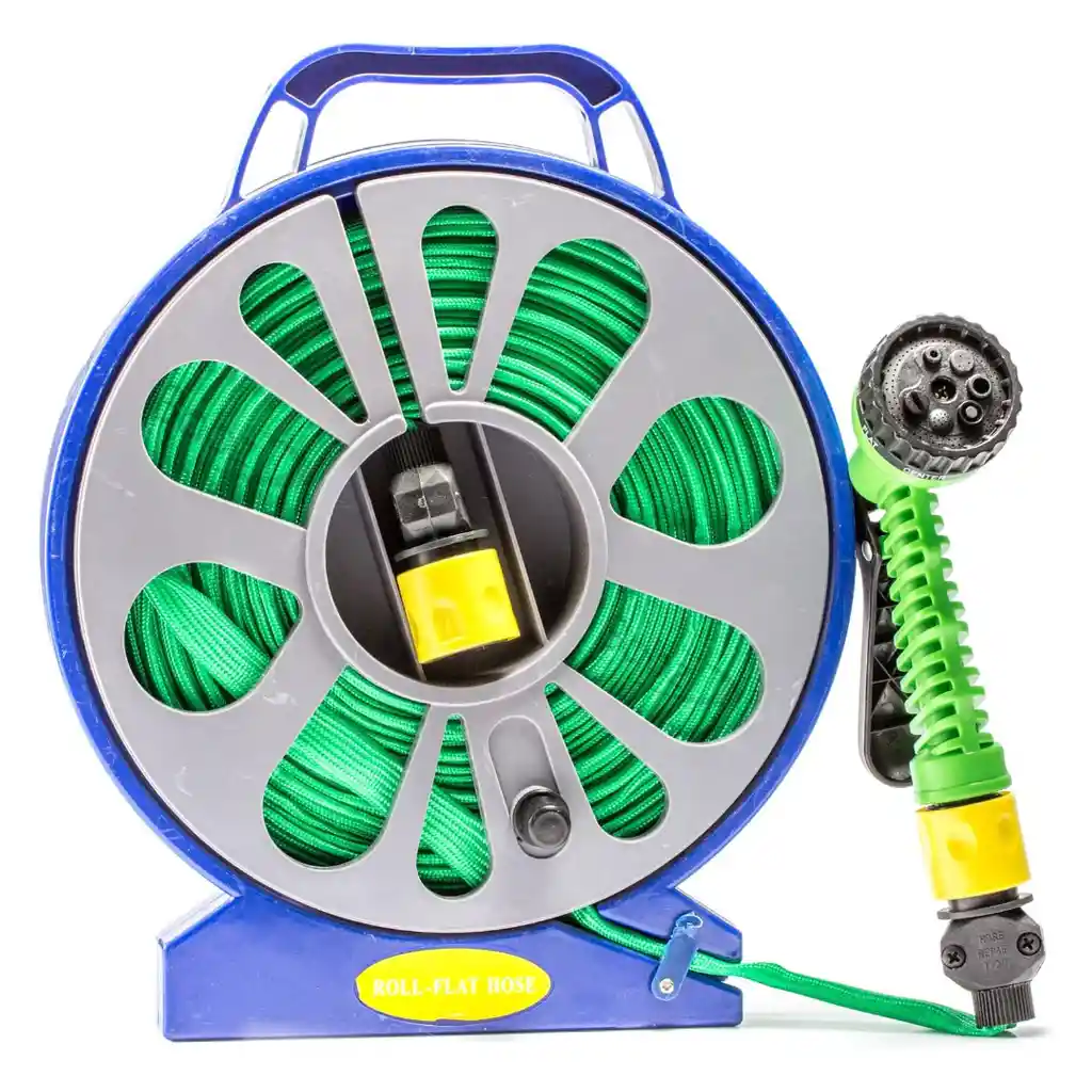 Manguera Expandible con Carrete 15M – Eficiencia, Orden y Alcance Total Diseñada para facilitar las tareas de riego y limpieza, esta manguera expandible es la solución perfecta que se adapta a tus necesidades sin ocupar espacio innecesario. Su estructura de alta tecnología permite un uso cómodo y eficiente, alcanzando hasta 15 metros de distancia cuando está en uso y reduciéndose automáticamente al cerrar el paso del agua. Incorpora un carrete de organización integrado que evita enredos y facilita el almacenamiento rápido, brindando una experiencia práctica y ordenada en jardines, patios o cualquier área exterior del hogar. Características Principales Tecnología Expandible: Se estira hasta 15 metros con la presión del agua y se contrae al terminar. Carrete de Organización: Sistema integrado que ayuda a mantener el orden y evita molestos enredos. Diseño Ultra Portátil: Formato ligero e ideal para mover fácilmente por diferentes áreas exteriores. Material Flexible y Resistente: Estructura duradera que se adapta a las tareas de riego y limpieza diaria. Almacenamiento Compacto: Ocupa el mínimo espacio una vez contraída y guardada en su base. Versatilidad de Uso: Perfecta para el mantenimiento de jardines, lavado de vehículos o limpieza de patios. Especificaciones Técnicas Longitud Máxima: 15 metros (expandida). Tipo de Manguera: Expandible / Retráctil. Accesorio Incluido: Carrete de almacenamiento manual. Uso: Exterior (jardinería y limpieza). Material: Polímeros de alta elasticidad y resistencia. Portabilidad: Asa de transporte integrada en el carrete. Dimensiones Aproximadas Medidas del Carrete: Aprox. 32 cm x 28 cm x 15 cm. Peso: Muy ligera para fácil manipulación (aprox. 1.2 kg). Funciones Destacadas Orden Inmediato: El carrete permite recoger la manguera en segundos, manteniendo el área de trabajo despejada. Alcance Eficiente: Permite cubrir áreas amplias sin el peso de una manguera tradicional de caucho. Mantenimiento del Hogar: Una opción funcional para quienes buscan eficiencia en el cuidado diario del jardín. Contenido del Paquete 1 x Manguera Expandible 1 x Carrete de Organización Acoples de conexión Pistola de riego (según disponibilidad) Garantía Este producto cuenta con 30 días de garantía por defectos de fabricación. Política de Retracto Aplica el derecho de retracto dentro de los 5 días hábiles posteriores a la entrega. El producto debe devolverse sin uso, limpio, seco y con su empaque original en perfecto estado. Notas Importantes Presión de Agua: El alcance de 15 metros depende directamente de la presión de agua de su hogar. Cuidado: No dejar la manguera bajo presión de agua cuando no esté en uso para evitar daños en la elasticidad. Evidencia: Para trámites de garantía o retracto, es indispensable presentar fotos o videos del estado del producto. La garantía no cubre pinchazos por objetos cortantes, daños por dejarla expuesta al sol prolongadamente o roturas por presión excesiva.