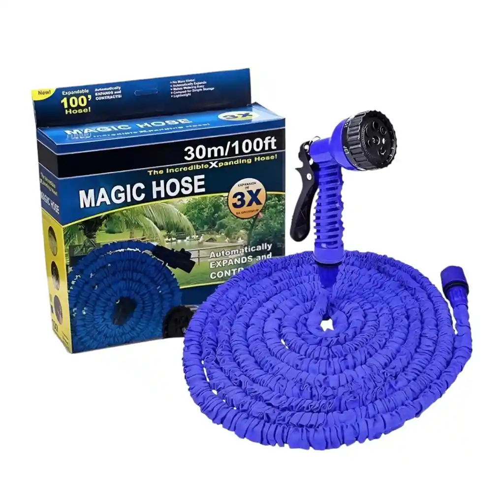 La manguera expandible es la solución práctica y moderna para el riego de jardines, lavado de vehículos y limpieza del hogar. Gracias a su diseño inteligente, se expande un poco más a su tamaño original al entrar en contacto con el agua y vuelve a su estado compacto al vaciarse, ocupando un espacio mínimo de almacenamiento. Incluye pistola rociadora con múltiples modos de presión para adaptarse a diferentes necesidades, evitando enredos y torceduras. DETALLES Se expande con el agua Extremadamente ligera Fácil de usar, guardar y transportar Material: Tela impermeable Característica: Ajustable, Antiabrasión, Flexible, suave Se contrae automáticamente al vaciarse para fácil almacenamiento Diseño antienredos y antitorceduras Pistola de riego con múltiples modos de salida de agua Conexiones rápidas y seguras para grifos estándar Ideal para riego de jardines, lavado de autos, mascotas y limpieza general Ligera, portátil y fácil de transportar *IMPORTANTE* El color del producto puede variar, según la disponibilidad en el momento* **INFORMACION IMPORTANTE **El color de la foto es referencial para que puedas ver los atributos del producto y al mismo tiempo es la opción 1 nuestra de despacho. Pero dejamos la aclaración para que lo tengas presente por si te llegara en otro color. ** NOTA : La foto de este producto ha sido ambientada, por lo cual no incluye ningún adorno, ni accesorios, ni piezas adicionales ni ningún otro elemento que lo acompañan. Observaciones De Garantía: 1 Mes**** La garantía de este producto es exclusivamente por defectos de fábrica, no por daños ocasionados por mal uso o por desconocimiento de uso del cliente. La garantía se tramitará bajo las políticas, términos y condiciones establecidos por la empresa.