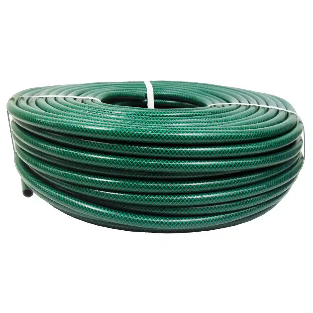 CARACTERISTICAS: • Resistencia a presión por el refuerzo textil en hilo diagonal. • Flexible. • Sin torsiones. • Resistente a la abrasión. • Recubrimiento exterior verde. • Resistente a los rayos UV. MATERIAL: PVC, lo que no permite la acumulación de algas en su interior. APLICACIÓN: Jardines sencillos. DIAMETRO: 1 / 2 “