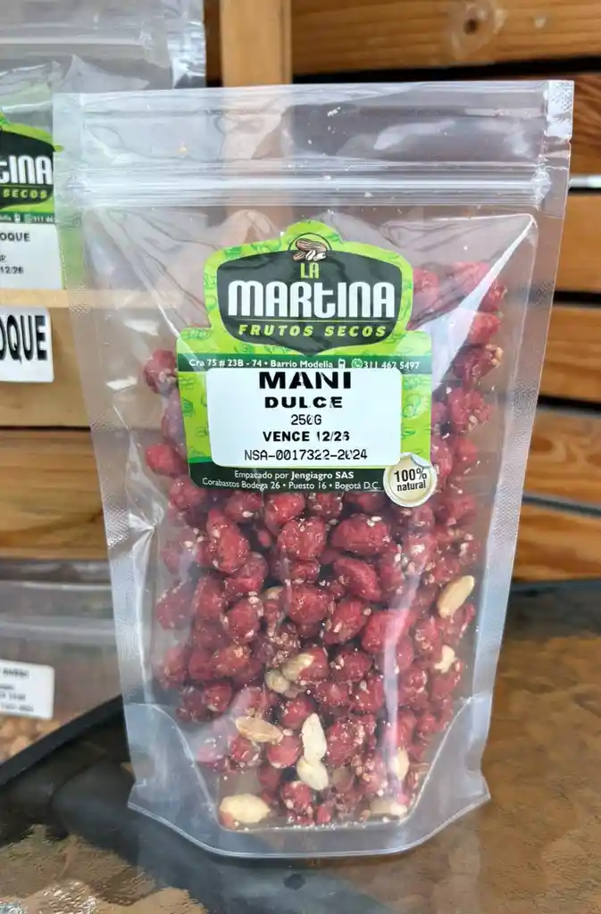 🌰 Maní dulce – Propiedades ✨ Fuente de energía rápida Aporta carbohidratos y grasas saludables. 💪 Proteína vegetal Contribuye al mantenimiento de la masa muscular. ❤️ Grasas monoinsaturadas Apoyan la salud cardiovascular. 🧠 Vitaminas del complejo B Favorecen el metabolismo y el sistema nervioso. 🦴 Minerales esenciales Magnesio, fósforo y potasio. ⚠️ Contiene azúcares añadidos Producto con azúcar incorporada. Consumir con moderación.