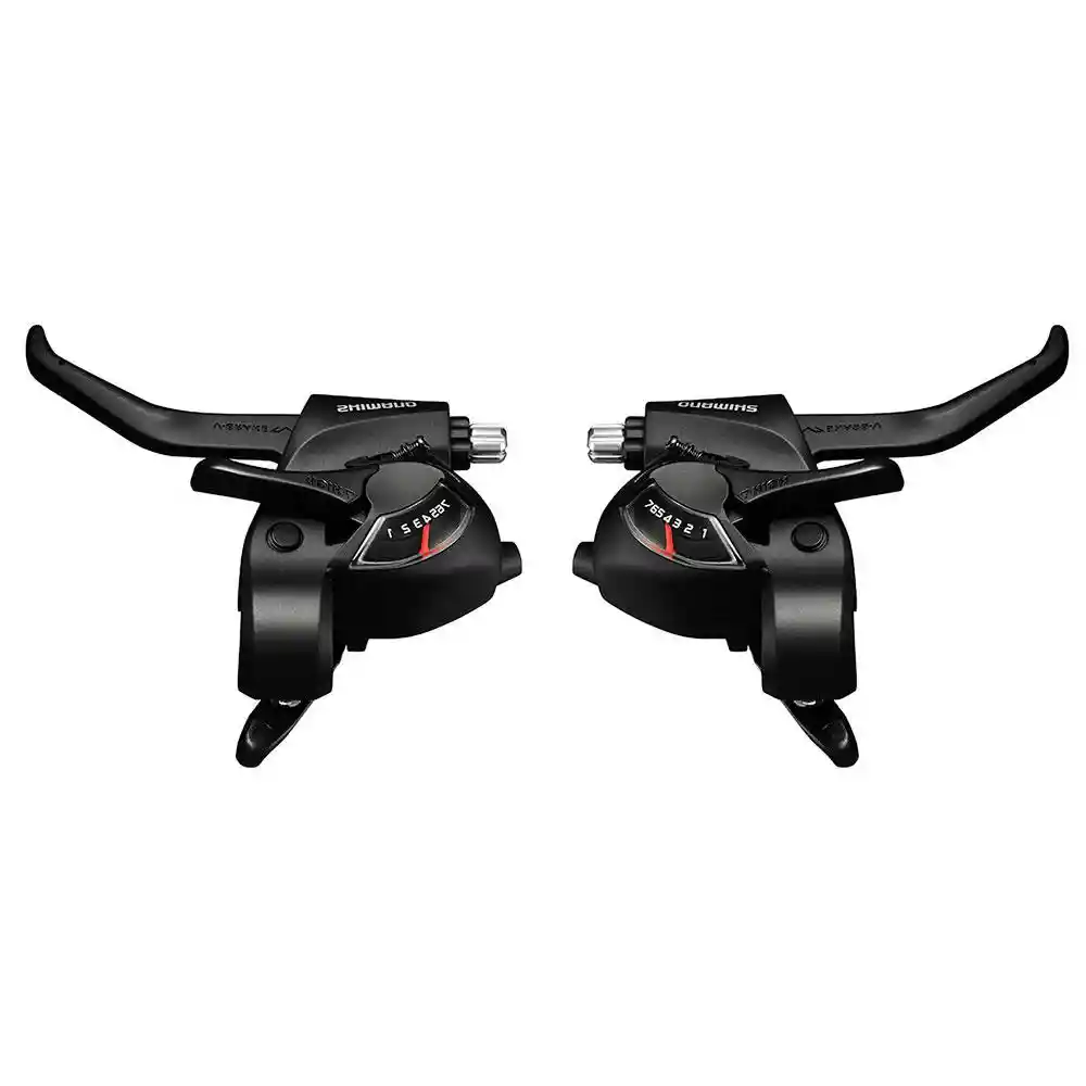 DescripciónPar de Shifters Shimano con manilar en teflon - Modelo toruney St ef41 - Relación 3x7Especificaciones:Compatible: RapidfireCompatibilidad: ShimanoDesviador izquierdo: 3 VelocidadesDesviador derecho: 7 velocidadesPara 21 velocidades.Indicador de engranaje óptico: síCables incluidos.