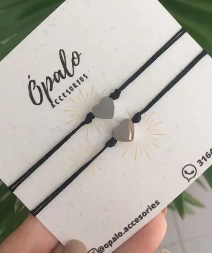 Manilla corazón en Acero inoxidable en hilo chino color negro
