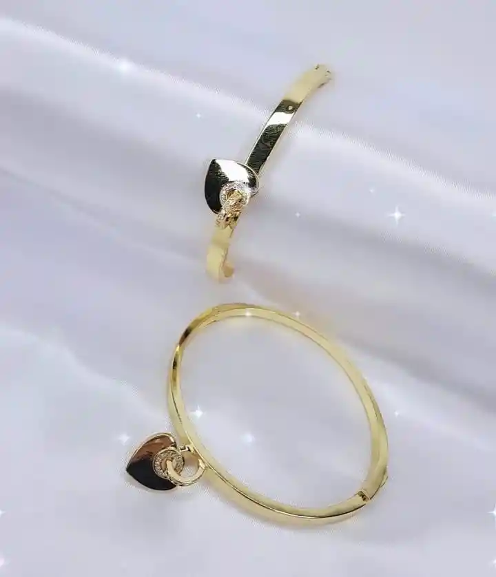 HERMOSA MANILLA TIPO BRAZALETE DORADA CON CORAZON, ELABORADA EN RODIO, PERFECTA PARA COMBINAR TU OUTFIT, TE VERAS HERMOSA, ÚNICA Y A LA MODA