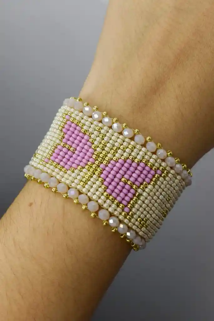 HERMOSA MANILLA GRUESA ELABORADA EN MOSTACILLA BLANCA CON UNA MARIPOSA GRANDE MORADA, PERFECTA PARA CADA OCASIÓN