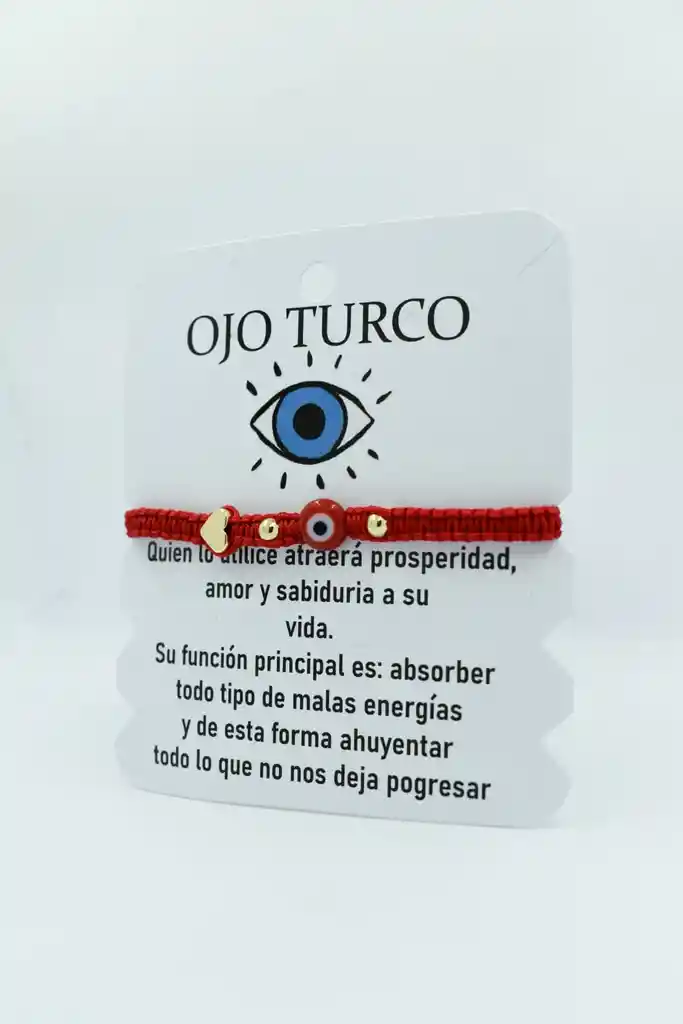 HERMOSA MANILLA DE COLOR ROJO ACOMPAÑADO DE UN OJO TURCO, ELABORADAS CON HILO, PERFECTA PARA ALEJAR EL MAL