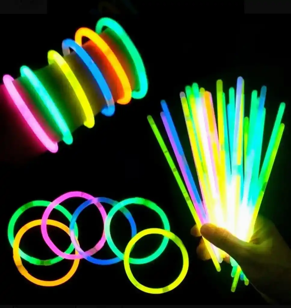 Las Pulseras / Manijas de NEON, luminosas son barritas de plástico que al activarlas emiten luz durante horas por la reacción química de la quimioluminiscencia. Son 5 los elementos que forman parte de su composición, al "PARTIR" cada barrita se ACTIVAN y EMITEN Varios Colores en la OSCURIDAD. * Producto Nuevo, SELLADO, En su Empaque. * Contenido: 1 Frasco x 50Und * Aptas para Fiestas de Adultos y Despedida de Soltera * Accesorios para decorar HALLOWEN, Accesorios Neón. * Cada Envase Viene con Varios Colores Surtidos.
