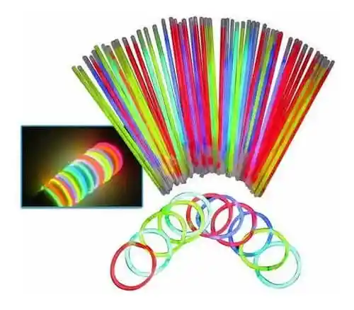 Las Pulseras / Manijas de NEON, luminosas son barritas de plástico que al activarlas emiten luz durante horas por la reacción química de la quimioluminiscencia. Son 5 los elementos que forman parte de su composición, al "PARTIR" cada barrita se ACTIVAN y EMITEN Varios Colores en la OSCURIDAD. * Producto Nuevo, SELLADO, En su Empaque. * Contenido: 1 Frasco x 50Und * Aptas para Fiestas de Adultos y Despedida de Soltera * Accesorios para decorar HALLOWEN, Accesorios Neón. * Cada Envase Viene con Varios Colores Surtidos.