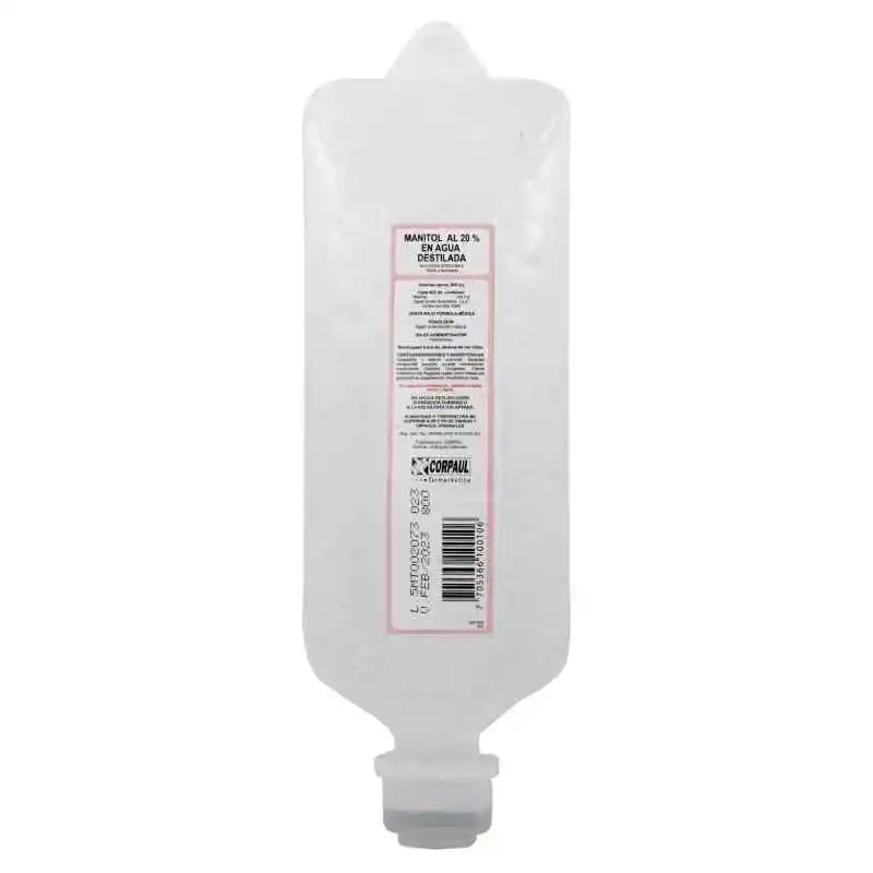 Mannitol 20% 500 ml Solución intravenosa indicada para la reducción de la presión intracraneal y ocular, así como para el tratamiento de la insuficiencia renal aguda en animales. El manitol actúa como un diurético osmótico, favoreciendo la eliminación de líquidos y reduciendo la acumulación de agua en los tejidos, lo que ayuda a restaurar el equilibrio hídrico y electrolítico. Composición: Mannitol 20% Excipientes adecuados para uso intravenoso en animales Indicaciones: Uso veterinario en situaciones de urgencia, como edema cerebral, glaucoma o insuficiencia renal aguda. Su administración debe ser realizada bajo la supervisión de un médico veterinario, ajustando las dosis según las condiciones clínicas del animal. Presentación: 500 ml