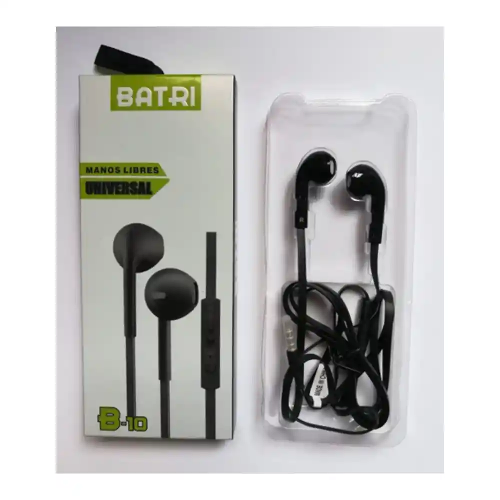 Manos Libres Universal Batri B-10 Disfruta de la libertad de hablar y escuchar música sin ataduras con los Manos Libres Universal Batri B-10. Compatibilidad Universal: Funciona con la mayoría de los smartphones y tablets con conector de 3.5 mm. Sonido Claro y Nítido: Calidad de sonido excelente para llamadas y música. Diseño Ergonómico: Auriculares cómodos para uso prolongado. Micrófono Integrado: Realiza y recibe llamadas con manos libres. Control de Funciones: Botón multifuncional para música y llamadas. ¡Compra ahora y experimenta la comodidad y calidad del Batri B-10!