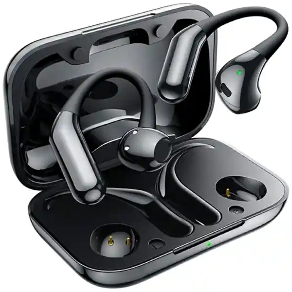 Tipo: Audífonos OWS (Open Wireless Stereo) con diseño de gancho para el oído. Características: Utilizan tecnología Bluetooth 5.4, ofrecen sonido envolvente de 360°, son resistentes al agua (IPX-4) y tienen una autonomía de batería de entre 5 y 10 horas. Diseño: Ergonómico "semi-in-ear" pensado para deportes, ya que no bloquean totalmente el canal auditivo.