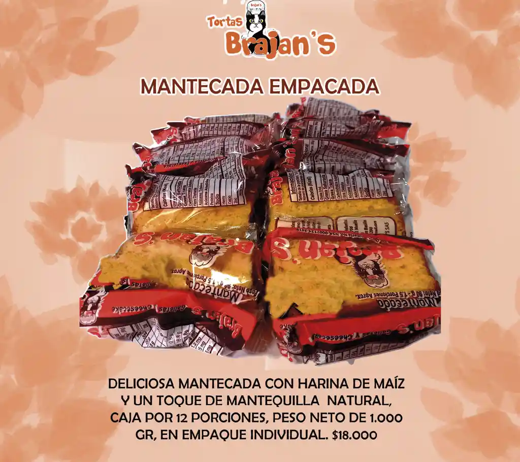 Deliciosa mantecada con harina de maíz y un toque de mantequilla natural, caja por 12 porciones, peso neto 1.000 gr, en empaque individual.