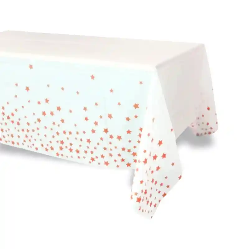 Mantel Blanco con estrellas Dorado Rectangular brillante medidas 1.37m x 1.83m