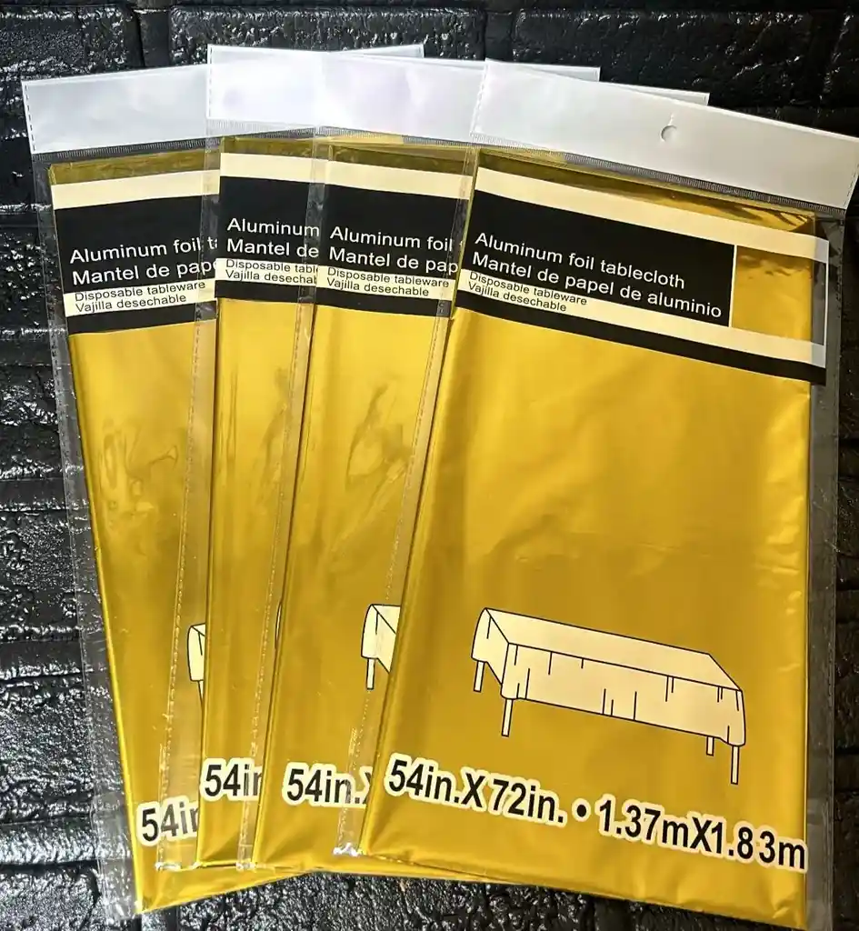 MANTEL DE MESA METALIZADO DORADO CUMPLEAÑOS / FIESTA 1.37m X 1.83m COD.1529