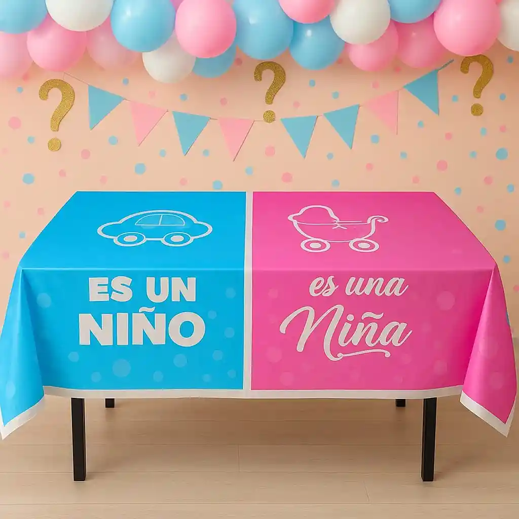 Celebra la llegada de tu bebé con estilo y sin preocupaciones con nuestro mantel desechable para fiesta de revelación de género/baby shower. Elegante, práctico y diseñado para agregar un toque especial a tu evento, es perfecto para proteger tu mesa y hacer que tus invitados se sientan cómodos. ¡Haz de este día un recuerdo inolvidable!