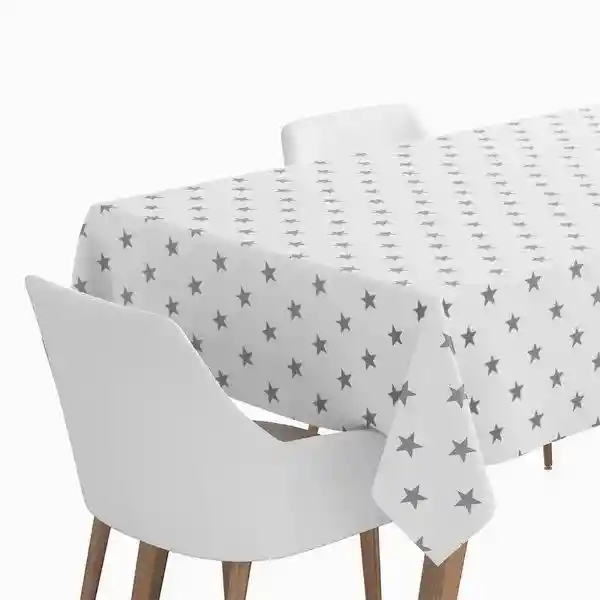 Descripción: Mantel rectangular en color blanco con un delicado estampado de estrellas grises distribuidas de manera uniforme. Su diseño moderno y minimalista lo convierte en una opción ideal para decorar mesas en el hogar o en eventos especiales, aportando un toque de estilo y luminosidad al ambiente. Fabricado con materiales resistentes y fáciles de limpiar, combina practicidad con elegancia.