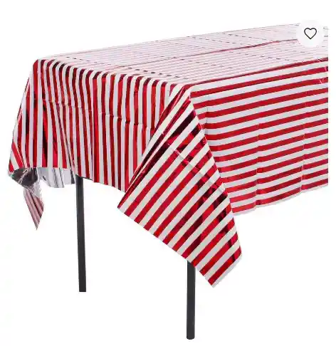 Mantel Fiesta Metalizado 183*137 a rayas Blanco rojo