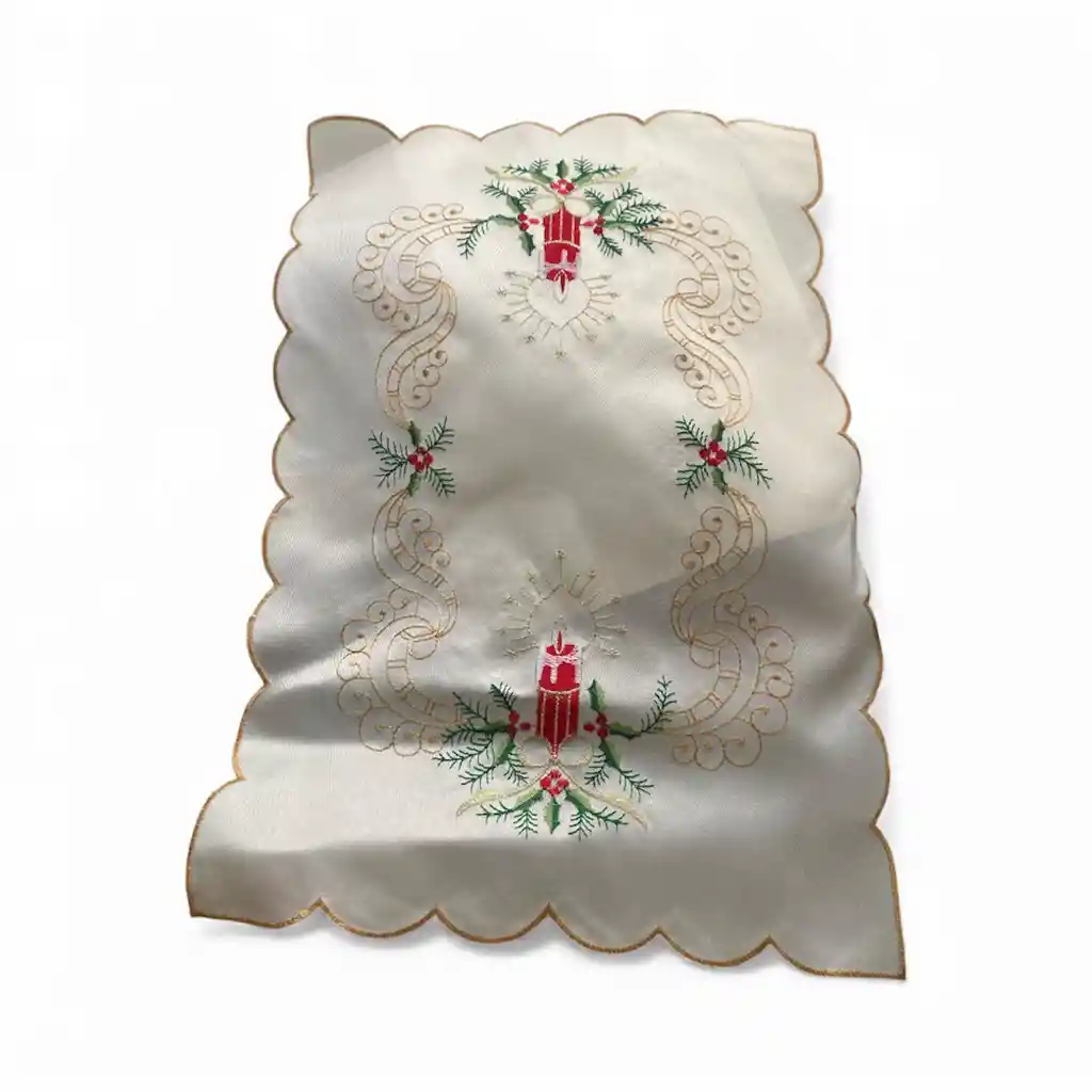 Mantel Individual O Camino De Mesa Navideño Con Bordados De Velas Y Bayas Rojas