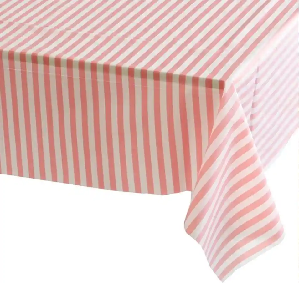 Mantel Metalizado De Plástico Rectangular Para Fiestas Con Diseño De Líneas SE ENVIA SEGUN DISPONIBILIDAD DE COLORES Y DISEÑOS Colores Disponibles : Fucsia con líneas blancas