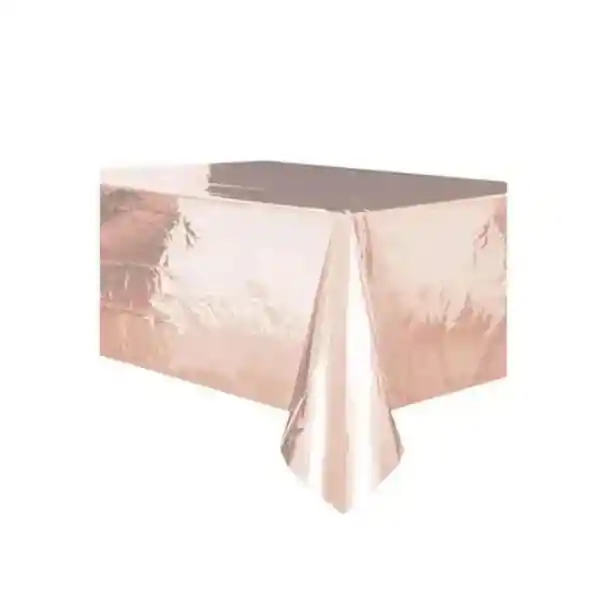 MANTEL METALIZADO PARA FIESTA ORO ROSA 183 X 137 CMS