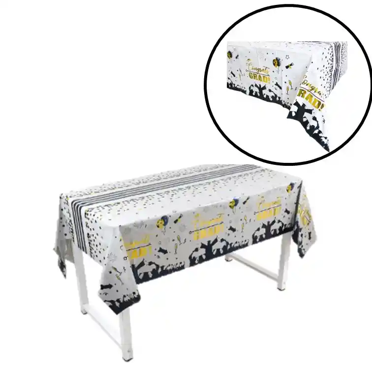 Mantel Metalizado para Graduación Grado Celebración medidas: 137 cm x 183 cm Material: papel metalizado disponible para entrega inmediata