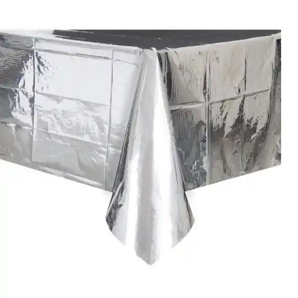 Mantel plástico rectangular metalizado en color plateado Tamaño: 137cm x 183cm