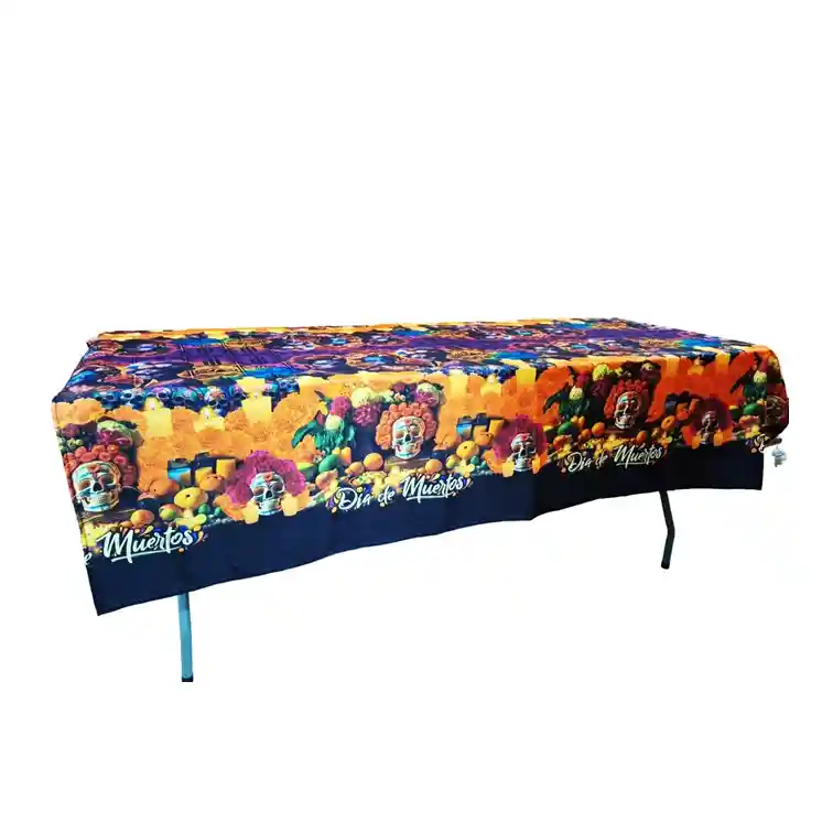 Mantel Mexicano dia de muertos Dimensiones 2 metros x 140 cm material Poliester Disponible para envio inmediato