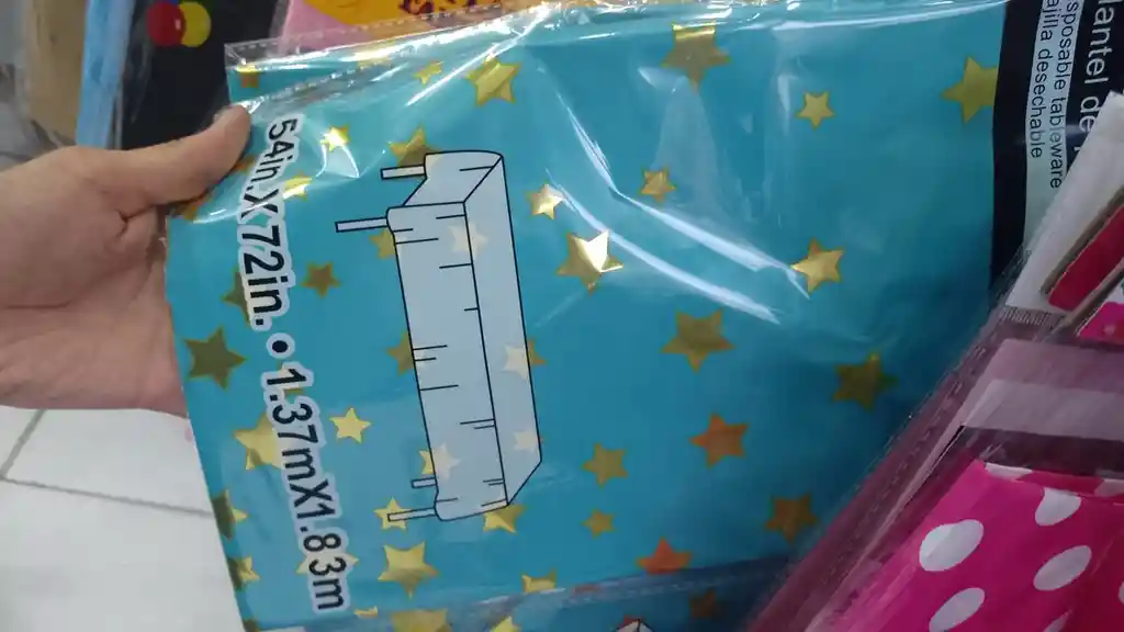Hermoso mantel, perfecto para tus decoraciones llenas de magia y brillo,cubre alrededor de dos mesas rimax, colores disponibles, azul y rosado con estrellas doradas.