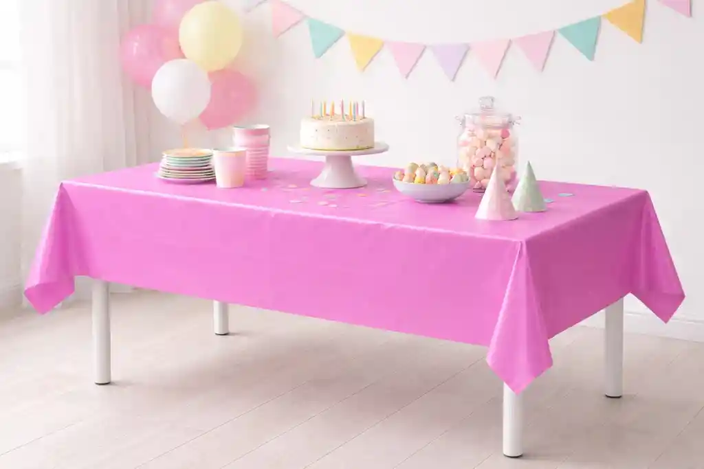 Dale un toque moderno y elegante a tus celebraciones con este mantel plástico color magenta, ideal para fiestas, cumpleaños, eventos y reuniones especiales. Su acabado liso y brillante aporta un look limpio y atractivo, perfecto para mesas rectangulares. Fabricado en plástico resistente, protege la mesa de derrames y facilita la limpieza. Es liviano, práctico y fácil de colocar, logrando que la mesa se vea bien estirada y ordenada en pocos minutos. Características: •Color: Magenta •Material: Plástico •Medidas: 1.37 m x 1.83 m (54 x 72 pulgadas) •Forma: Rectangular Uso: Fiestas, cumpleaños, eventos, reuniones Tener en Cuenta: •Incluye solo el mantel. Los demás elementos son solo ambientación.