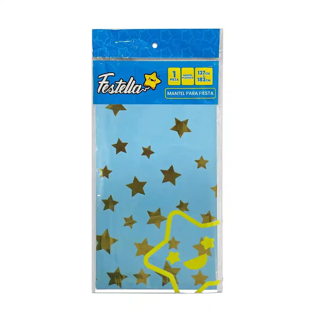 Mantel Plastico Estrellas Azul Claro x 1 Unidad Festella