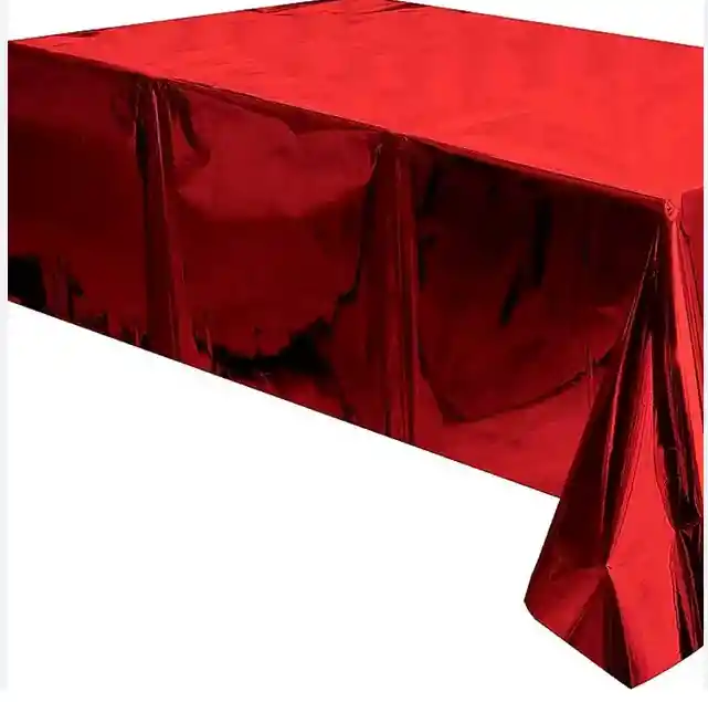 MANTEL PLASTICO METALIZADO DECORACION FIESTA COLOR ROJO Haz que tu celebración brille con este mantel plástico metalizado en color rojo, ideal para darle un toque vibrante, moderno y elegante a cualquier evento. Su acabado reflectivo crea un efecto llamativo que resalta la decoración y transforma tu mesa en el centro de atención. Perfecto para fiestas, cumpleaños, cenas románticas, navidad, aniversarios o eventos temáticos, este mantel combina estilo y funcionalidad. Está fabricado en plástico resistente, fácil de limpiar y reutilizable, protegiendo la mesa de derrames y manchas mientras aporta un toque festivo.